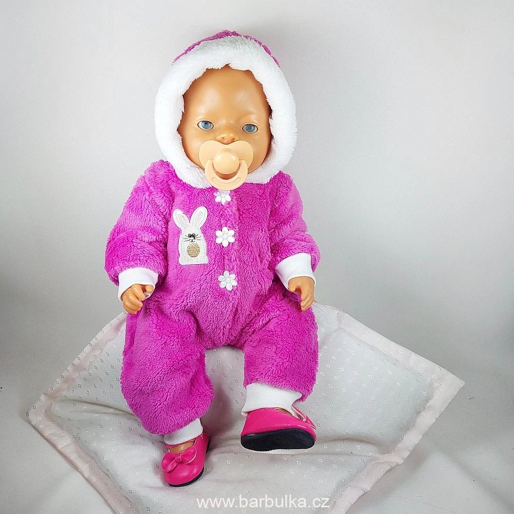overal z heboučkého fleecu, s kapucí a nášivkou zajíčka, zapínání vpředu na suchý zip celý popis