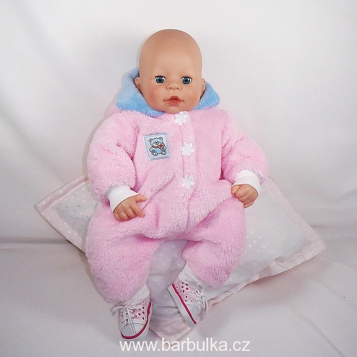 overal z měkoučkého fleecu s kapucí, s nášivkou medvídka, zapínání vpředu na neškrabavý suchý zip