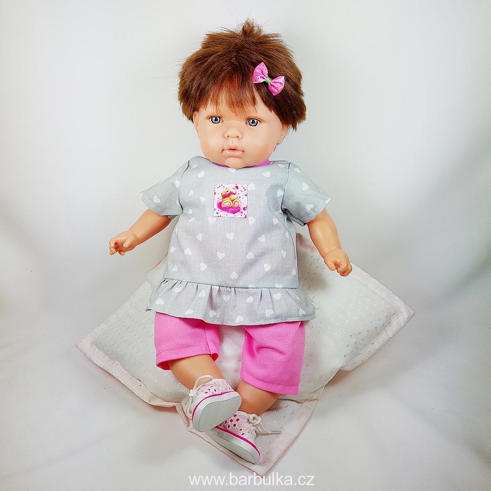 souprava, halenka s volánkem, s nášivkou medvídka, zapínání vzadu, materiál bavlna, legíny v pase do gumy, materiál úplet