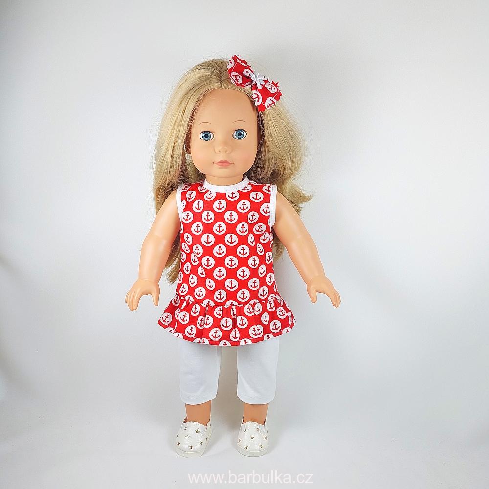 halenka s kotvičkami, volánkem, materiál bavlna, zapínání vzadu, krátké legíny z úpletu v pase do gumy a sponka do vlasů