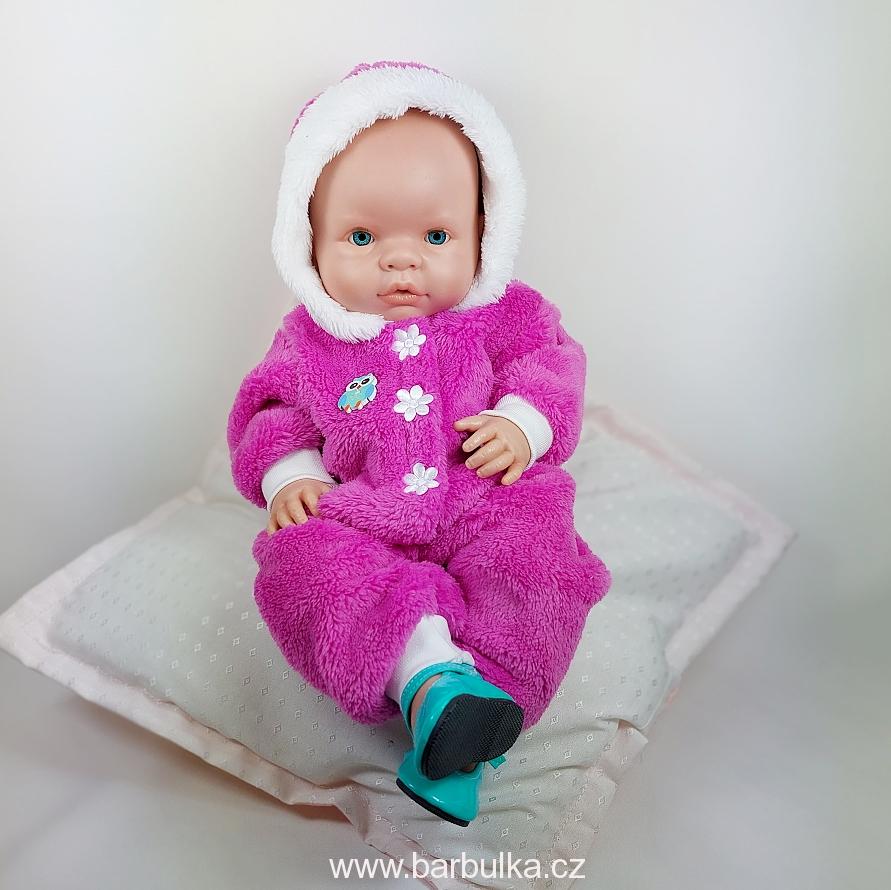 overal z měkkoučkého fleecu s kapucí, zapínání vpředu na neškrabavý suchý zip, knoflíčky jsou jen naznačené