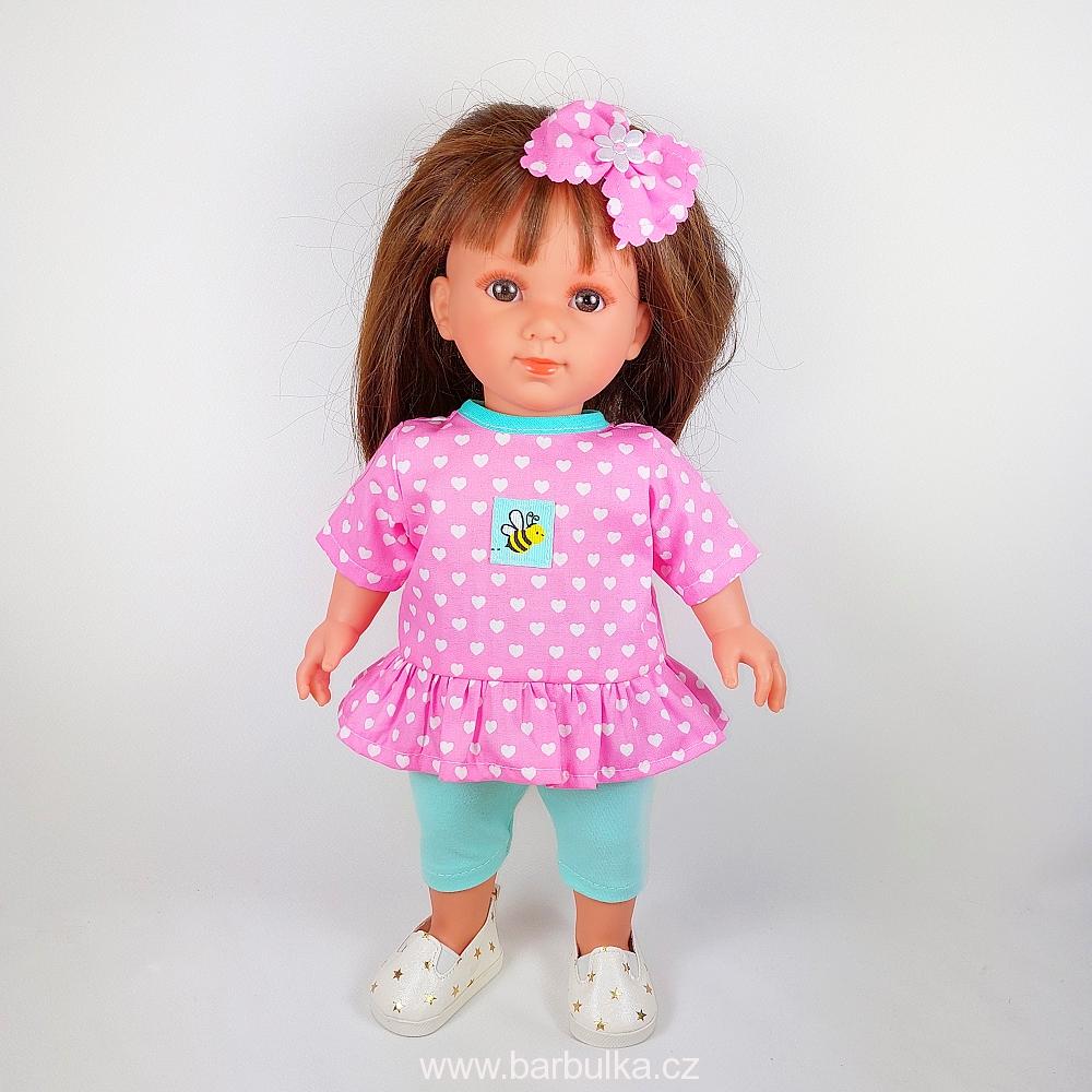 legínky v pase do gumy z úpletu, halenka s volánkem s nášivkou včelky, zapínání vzadu na suchý zip a sponka do vlasů