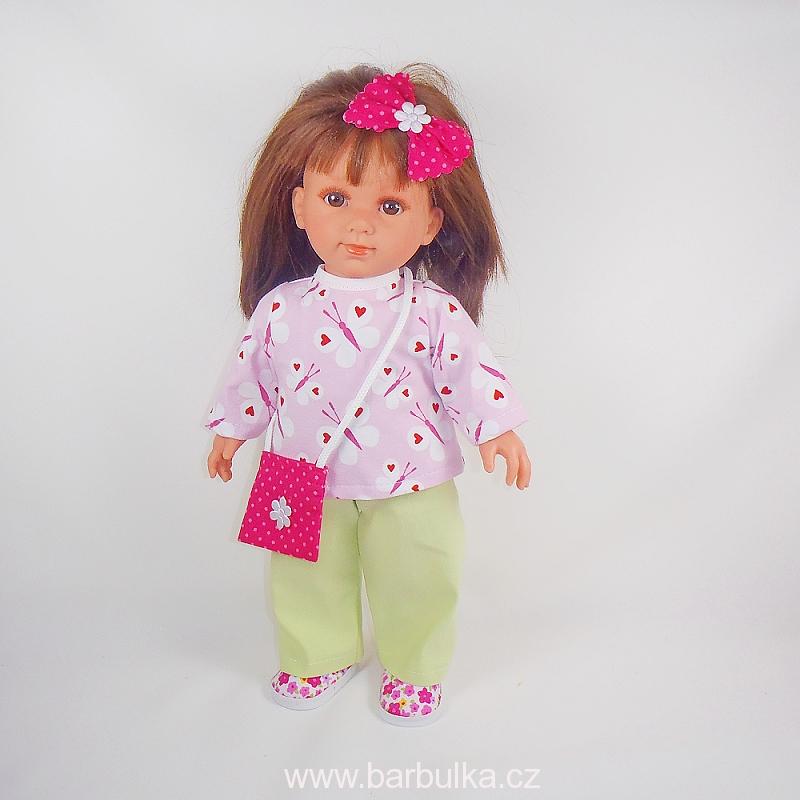 souprava, kalhoty z ronga, zapínání vzadu na suchý zip, tričko s dlouhým rukávem s motýlkama , materiál úplet, zapínání vzadu na suchý zip, kabelka a sponka do vlasů