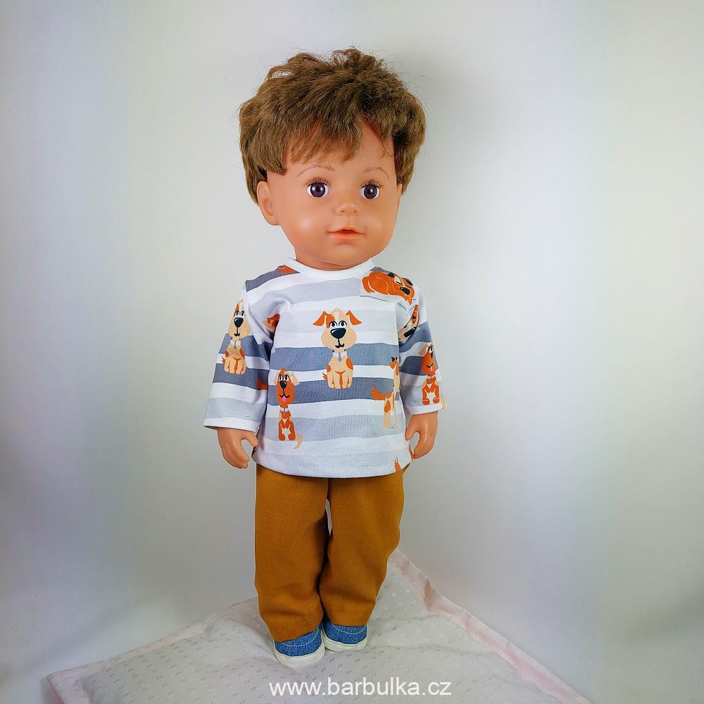 souprava, tepláčky v pase do gumy, a tričko s pejskama, s dlouhým rukávem, z úpletu, zapínání vzadu na suchý zip