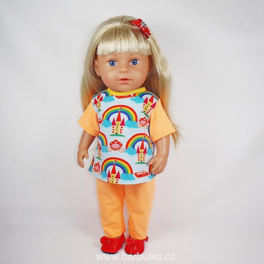 souprava, dlouhé legínky z úpletu v pase do gumy a halenka s volánkem, krátkým rukávem , materiál úplet, zapínání vzadu na suchý zip