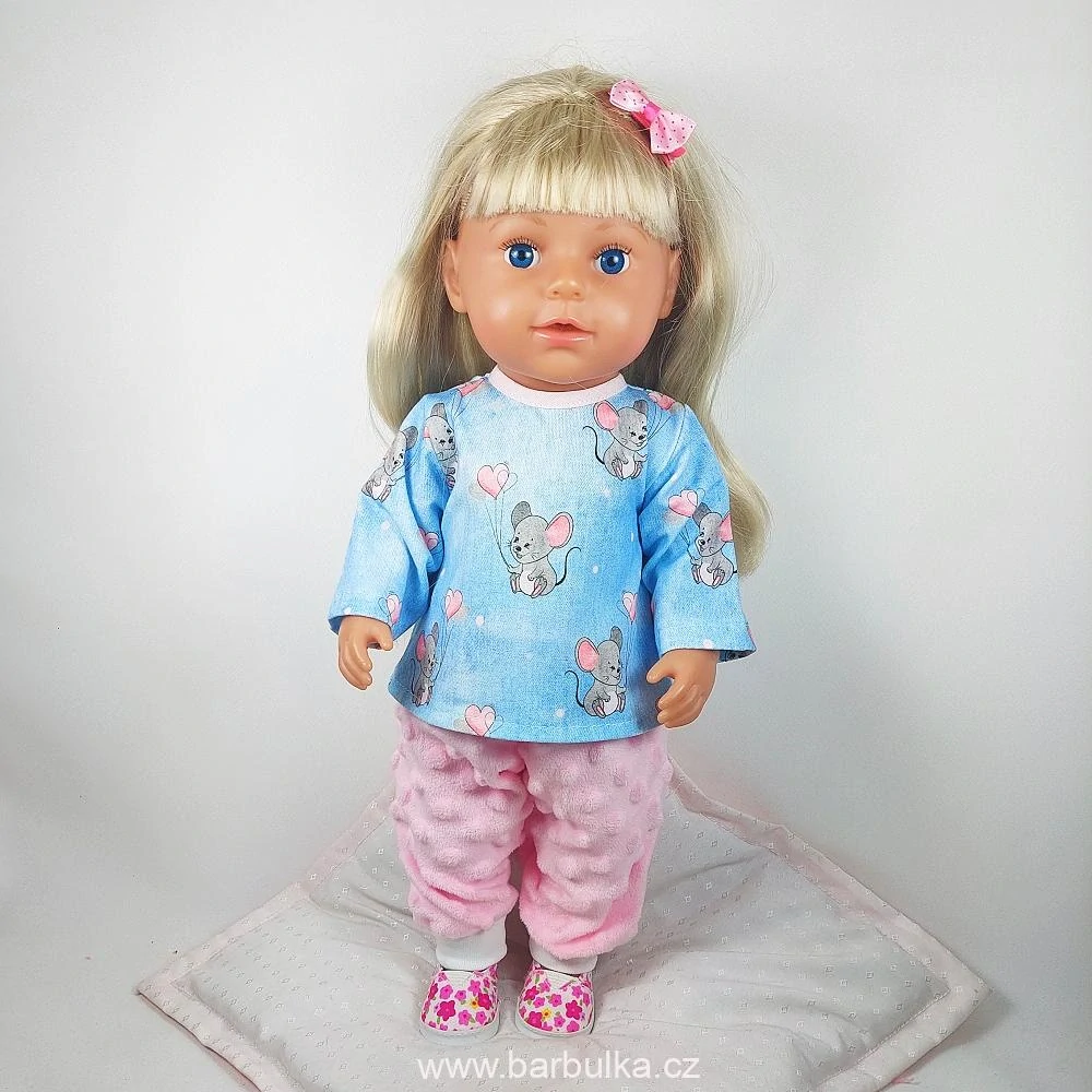 tepláčky z minky, v pase do gumy, tričko s myšičkami, materiál úplet, bavlna, zapínání vzadu na suchý zip