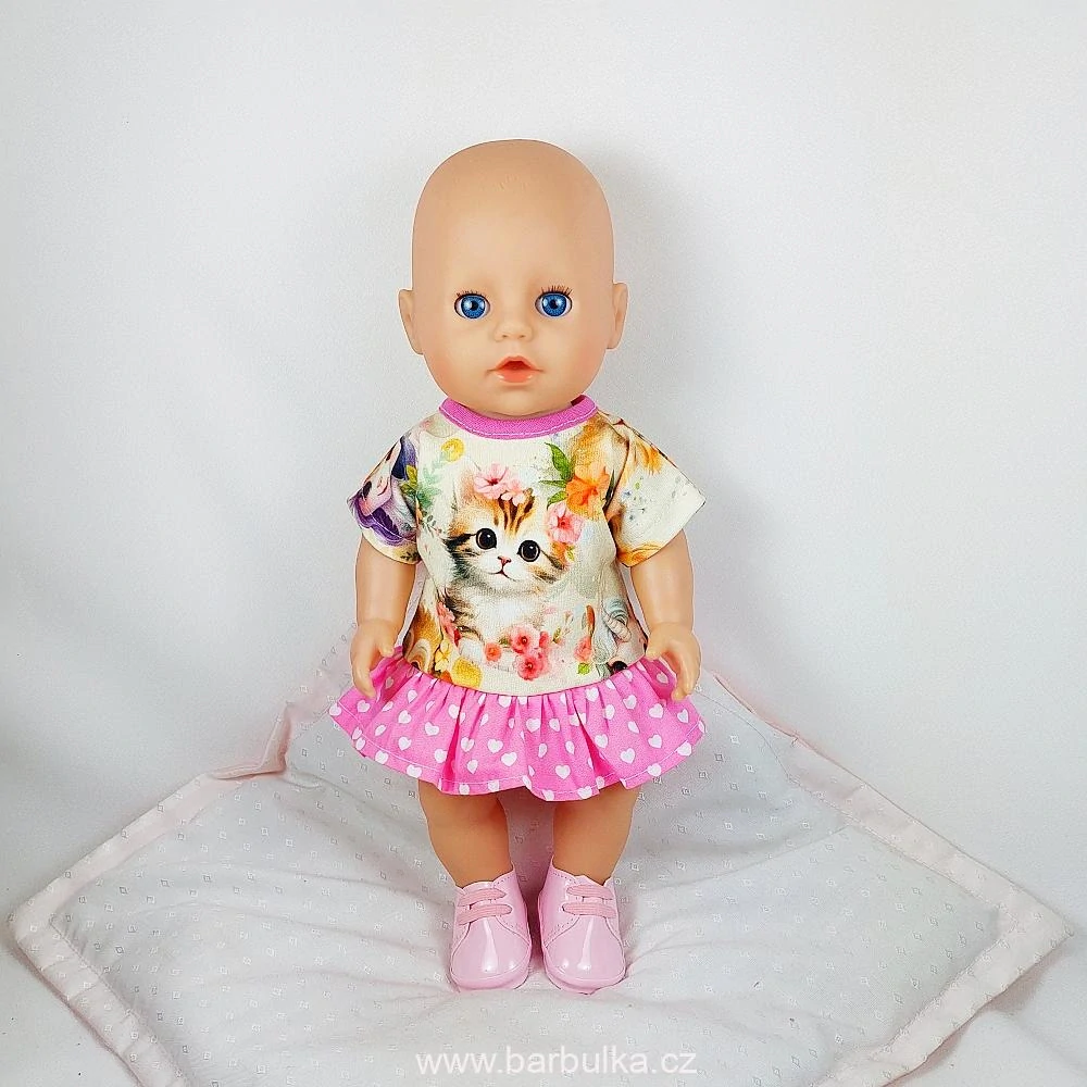 šatičky s volánkem, s kočičkou a čelenka, materiál úplet, bavlna, zapínání vzadu na suchý zip