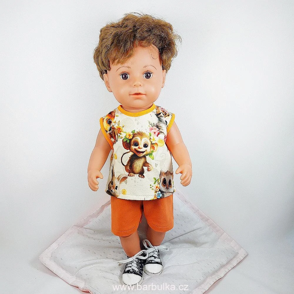 kraťasy v pase do gumy, a tričko s opičkou, materiál úplet, zapínání vzadu na suchý zip