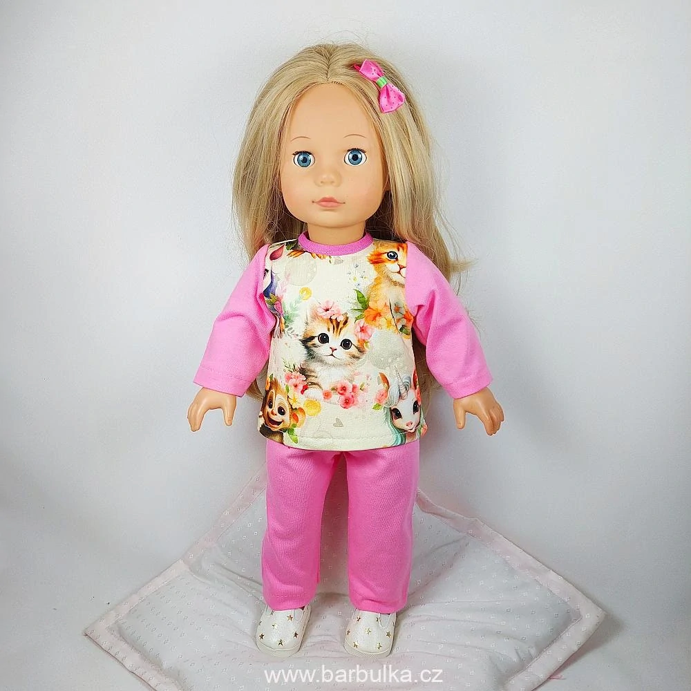dlouhé legíny v pase do gumy, tričko s kočičkami, s krátkým rukávem, zapínání vzadu na suchý zip, materiál úplet